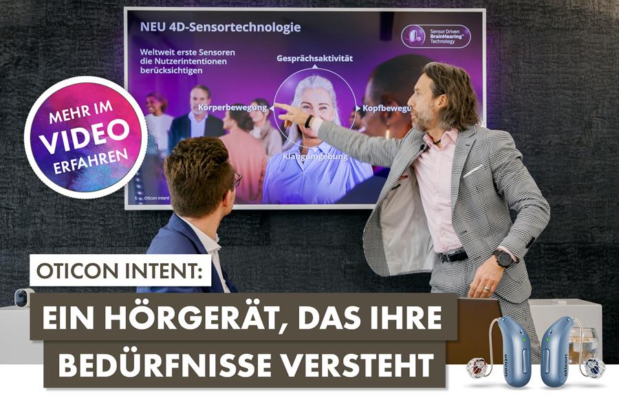 in unserem neusten Video möchten wir Ihnen eine der neuesten Technologien in der Hörakustik vorstellen: Das Oticon Intent. In einem spannenden Interview erklärt der audiologische Trainer und Experte Jörg Ellesser, wie dieses Gerät Ihnen dabei hilft, am Leben teilzunehmen wie nie zuvor.