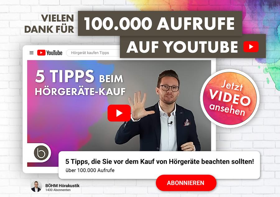 wir sind begeistert und dankbar: Unser Video „5 Tipps, die Sie vor dem Kauf von Hörgeräten beachten sollten“ hat mittlerweile beeindruckende 100.000 Aufrufe auf YouTube. Das zeigt uns, wie wichtig und wertvoll diese Informationen für viele Menschen sind – und motiviert uns, weiterhin Aufklärung rund um das Thema Hören zu betreiben.