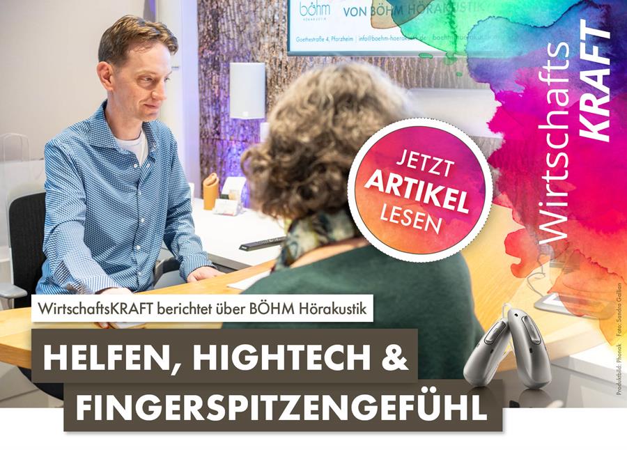 ein aktueller Bericht der „WirtschaftsKRAFT“ zeigt eindrucksvoll: BÖHM Hörakustik ist kein gewöhnlicher Hörakustiker. Während anderswo oft nur die Filialleitung einen Meisterbrief besitzt, engagieren sich bei uns gleich fünf Hörakustik-Meisterinnen und -Meister mit Leidenschaft und Kompetenz für Ihr gutes Hören.