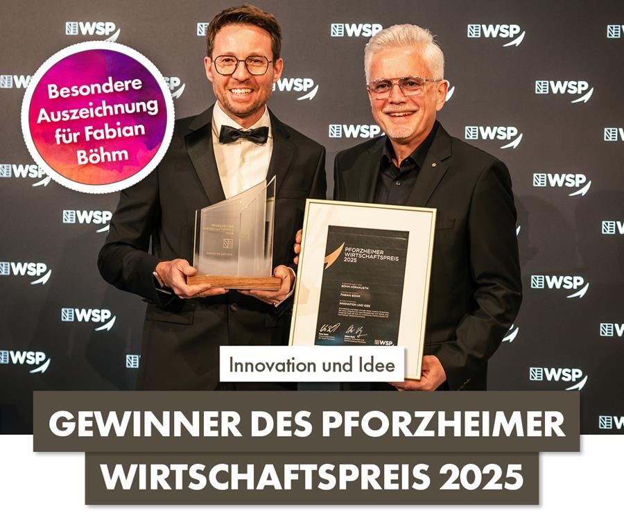 es gibt wieder einen Grund zu feiern: Unser Inhaber Fabian Böhm wurde mit dem Pforzheimer Wirtschaftspreis 2025 in der Kategorie „Innovation & Idee“ ausgezeichnet – eine Anerkennung, die uns mit großem Stolz und Dankbarkeit erfüllt.